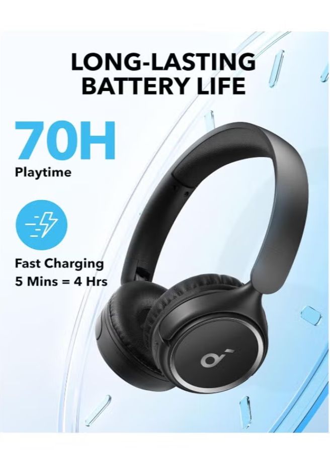 - Long-Lasting Playtime: Never stop the music with an impressive 70-hour battery life on a single charge. Experience lightning-fast charging with soundcore H30i, giving 4 hours of playtime on a quick 5-minute charge.