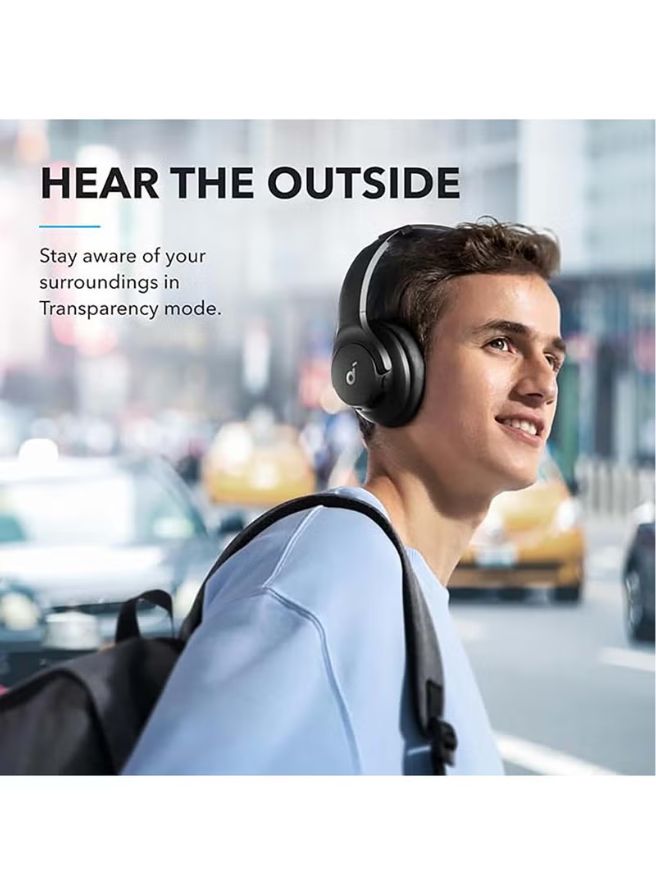 Hybrid Active Noise Cancelling: 2 internal and 2 external mics work in tandem to detect external noise and effectively reduce up to 90% of it, such as planes and car engines. Immerse Yourself in Detailed Audio: The noise cancelling foldable headphones have oversized 40mm dynamic drivers that produce detailed sound and thumping beats with BassUp technology. Compatible with Hi-Res certified audio via the AUX cable for more detail. 40-Hour Long Battery Life and Fast Charging: With 40 hours of battery life with ANC on and 60 hours in normal mode, you can commute in peace with your Bluetooth headphones without thinking about recharging. Fast charge for 5 mins to get an extra 4 hours of playtime. Dual-Connections: Connect to two devices simultaneously with Bluetooth 5.0 and instantly switch between them. Whether you’re working on your laptop, or need to take a phone call, audio from your Bluetooth headphones will automatically play from the device you need to hear from. App for EQ Customization: Download the soundcore app to tailor your sound using the customizable EQ, with 22 presets, or adjust it yourself. You can also switch between 3 modes: ANC, Normal, and Transparency, and relax with white noise. Hear Your Surroundings: Switch to Transparency mode on your noise cancelling headphones when you need to be aware of your surroundings, such as transportation announcements, crossing the road, or just staying connected to the world around you.