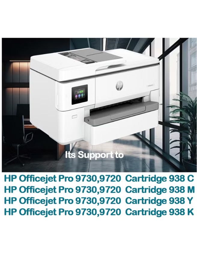 HP 938 Original Ink Office Jet Pro 9720/9730 Wide Format All-In-One Printer 4-Pack Black/Cyan/Magenta/Yellow
