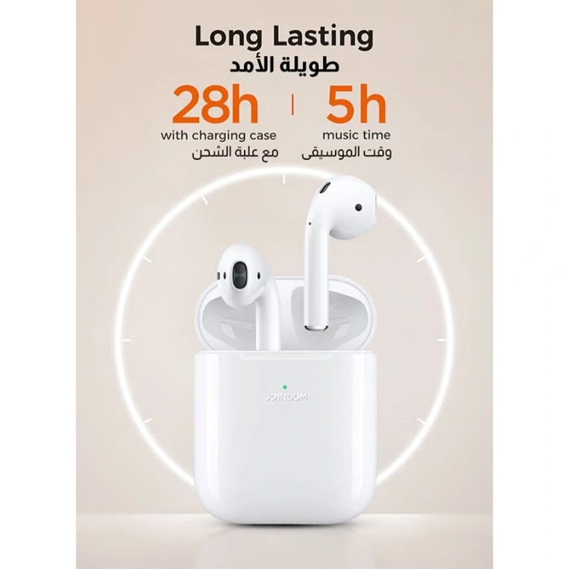 Joyroom JR-T03S (2024) TWS Semi In-Ear Earbuds – Low Latency, ENC Noise Reduction, 13mm Hi-Fi Bass, In-Ear Detection, Wireless + Wired Charging, Auto Pairing – White