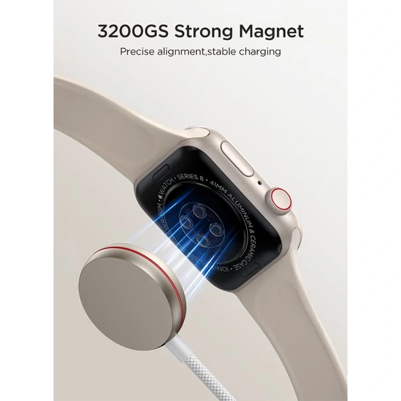 Built from durable aluminum alloy, nylon braid, and ABS, it combines long-lasting strength with a compact, lightweight design. Compatible with Apple Watch Series 1 to Series 9, SE, and Ultra models, it works seamlessly with most USB-C chargers, laptops, and power banks.