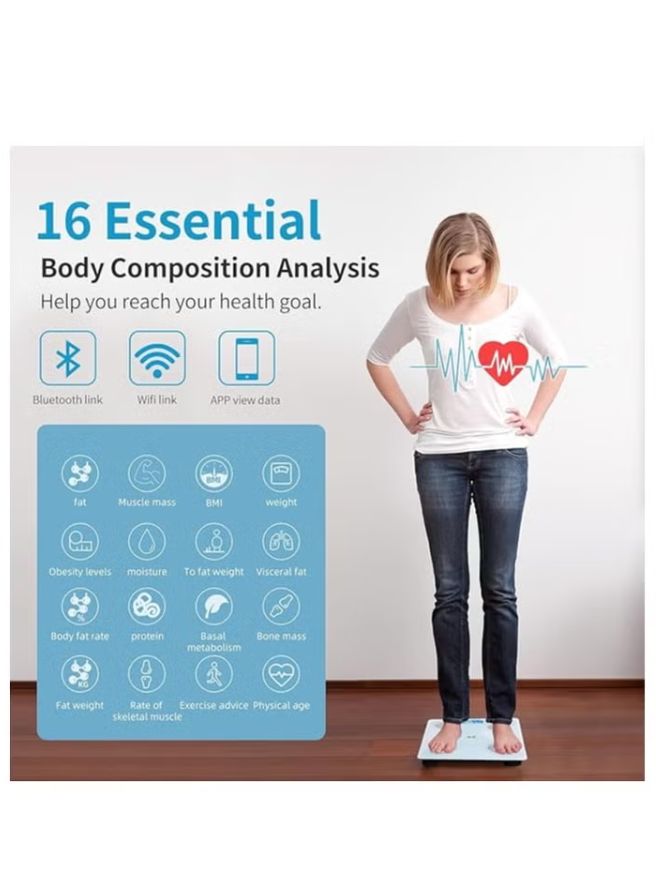 OMAKSS Digital Weight Scale,Bluetooth Body Fat Scale,LED Display and Step-On,Body Composition Monitor Health Analyzer,26x260x2cm,White