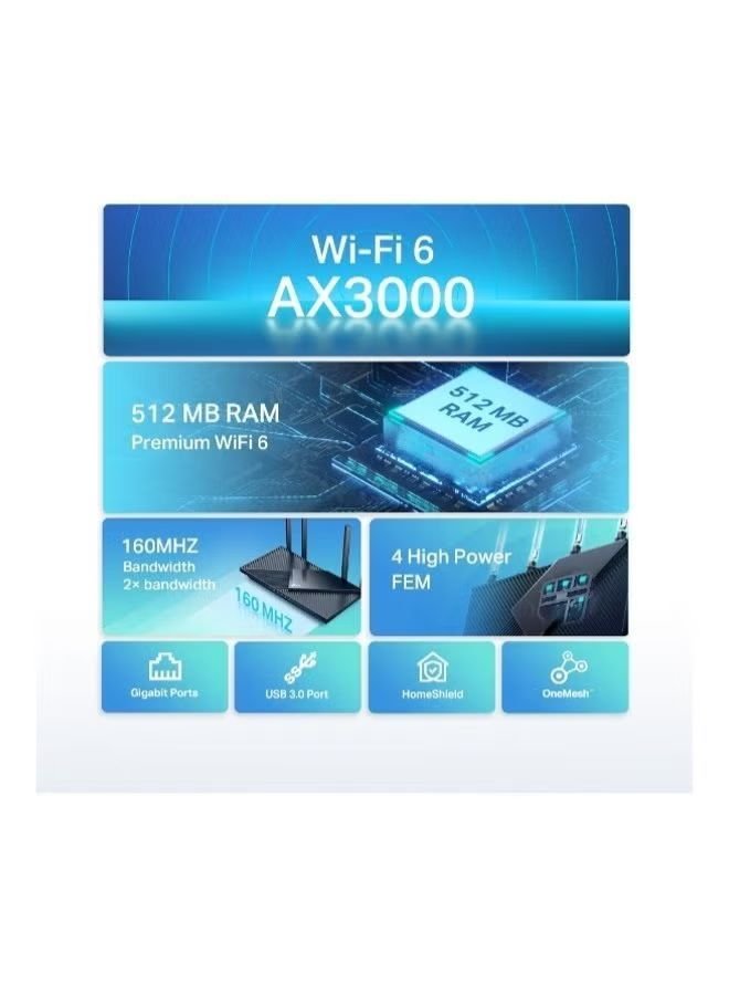 TP-LINK Archer AX55 AX3000 Dual Band Gigabit Wi-Fi 6 Router, 2402Mbps 5 GHz, 574Mbps 2.4 GHz, 802.11ax, 160MHZ Bandwidth, Dual Band, OFDMA, MU-MIMO, Works with Alexa, Archer AX55 Black